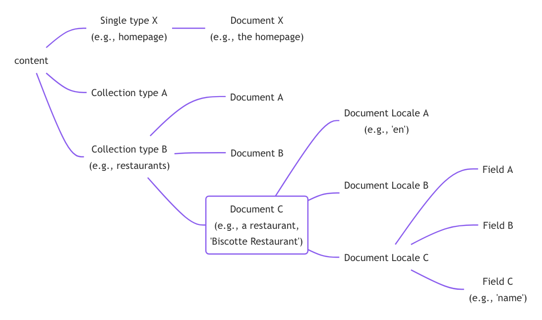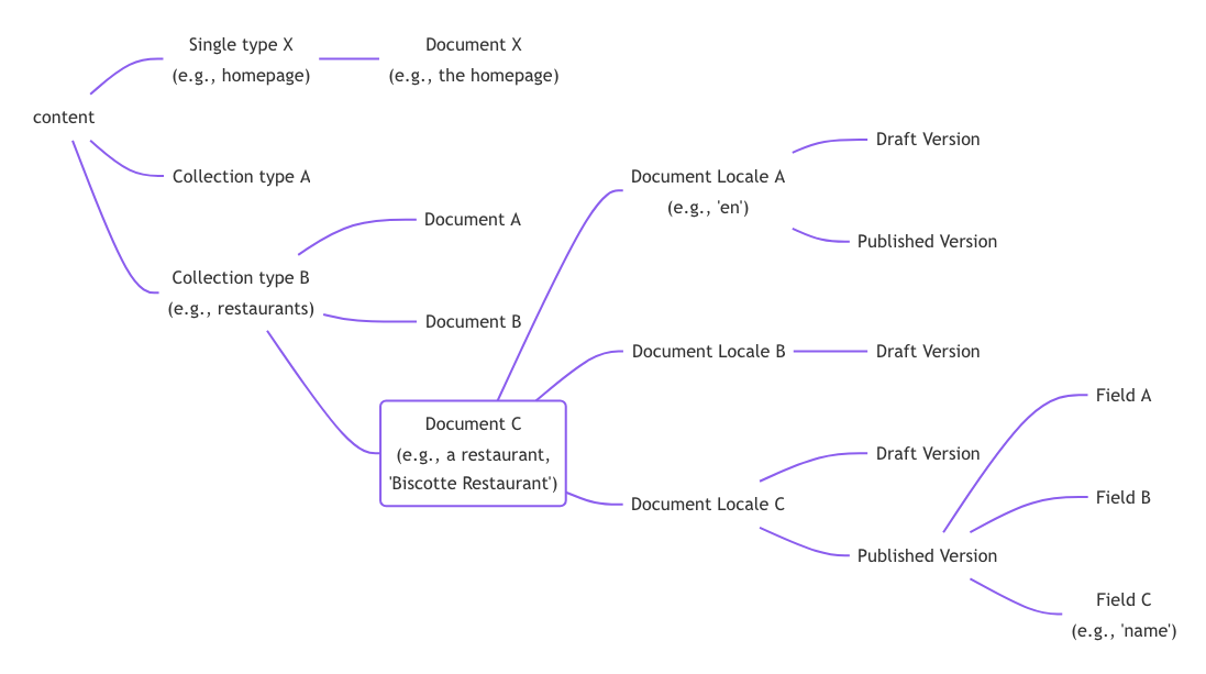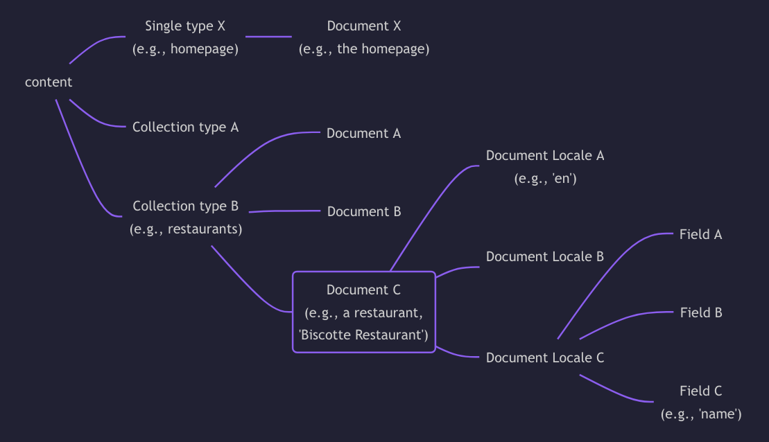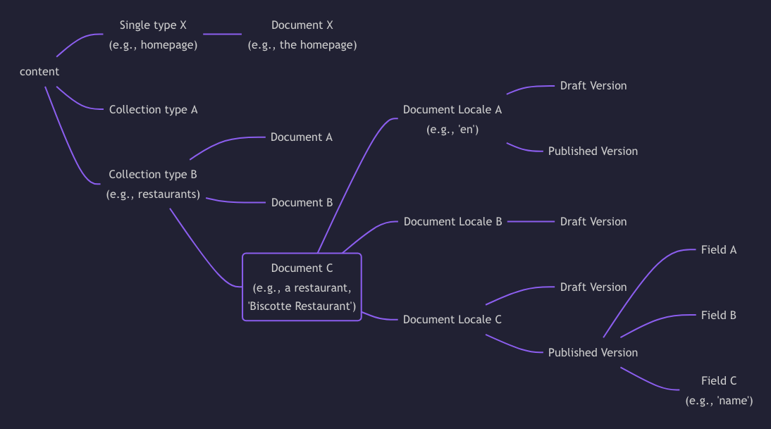 When you use the admin panel, the concept of a document is never mentioned and not necessary for the end user. Users create and edit entries in the Content Manager. For instance, as a user, you either list the entries for a given locale, or edit the draft version of a specific entry in a given locale.